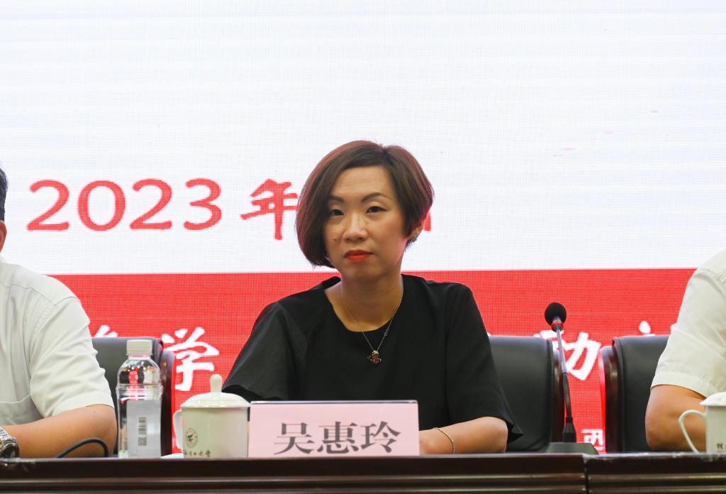 颁奖仪式上,吴惠玲代表周大福珠宝金行有限公司致辞,她介绍了周大福珠宝金行有限公司的基本情况以及设立“周大福奖学金”的意义,表示将继续和我校加强合作,帮助更多学子顺利完成学业,实现人生理想。同时,她鼓励全体获奖同学不忘初心,在追梦路上拼搏奋进、砥砺前行。