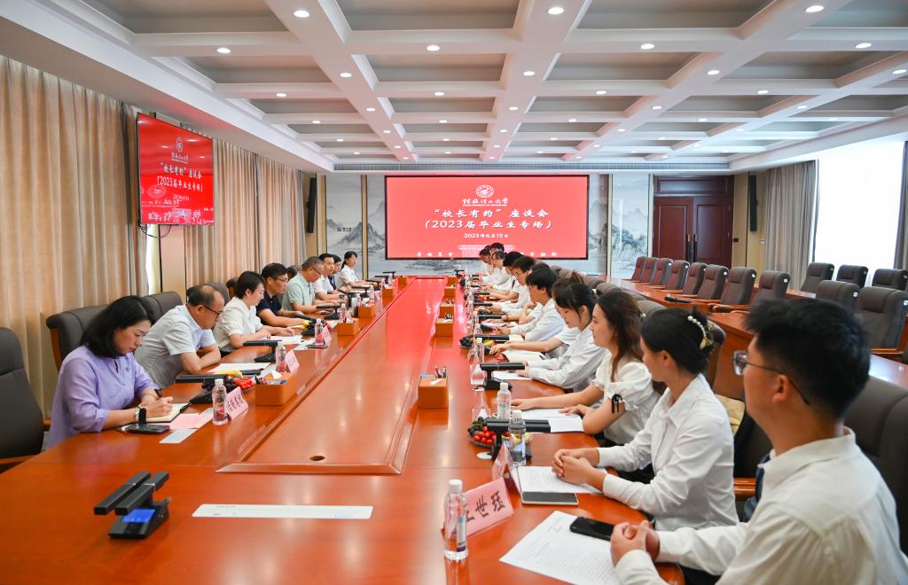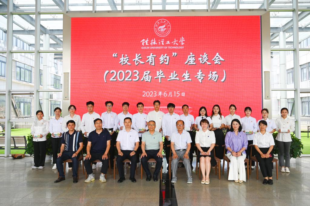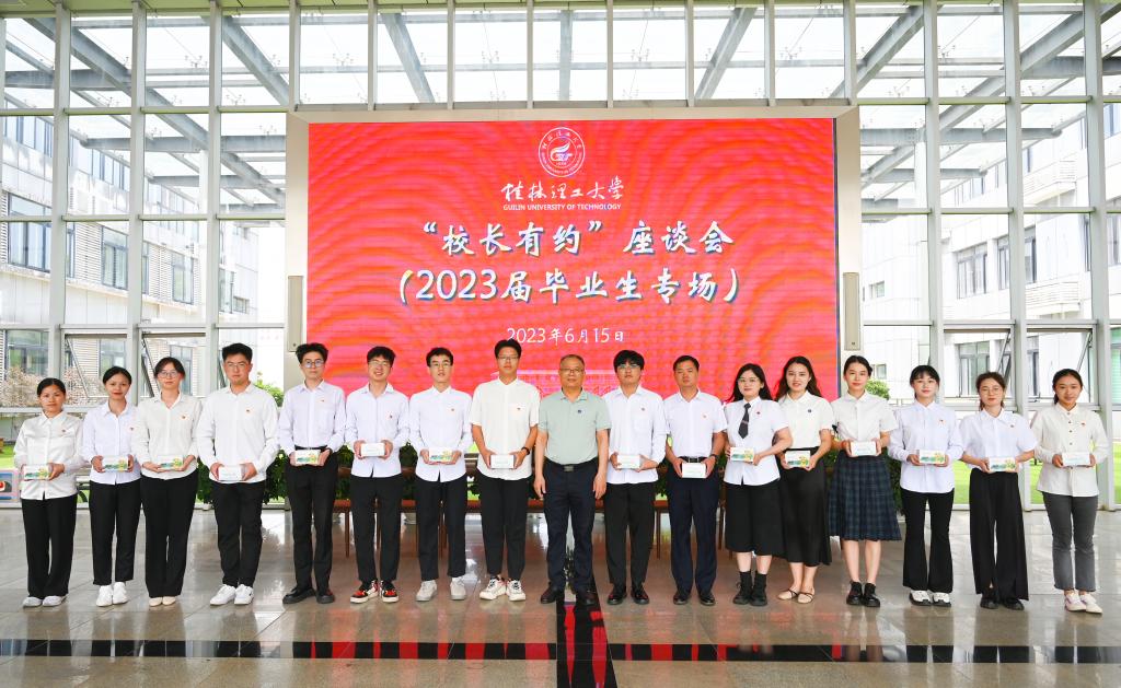 为倾听学生诉求、回应学生关切,共同探索开拓特色鲜明、国内知名高水平理工大学高质量发展的新思路、新举措,6月15日上午,我校在雁山校区行知楼A406会议室举行“校长有约”(2023届毕业生专场)座谈会。学校校长王敦球出席会议并讲话。党办校办、教务处、研究生院、学工处、校团委、招生就业处、后勤集团等部门负责人及来自各学院的2023届毕业生代表参加本次座谈会。