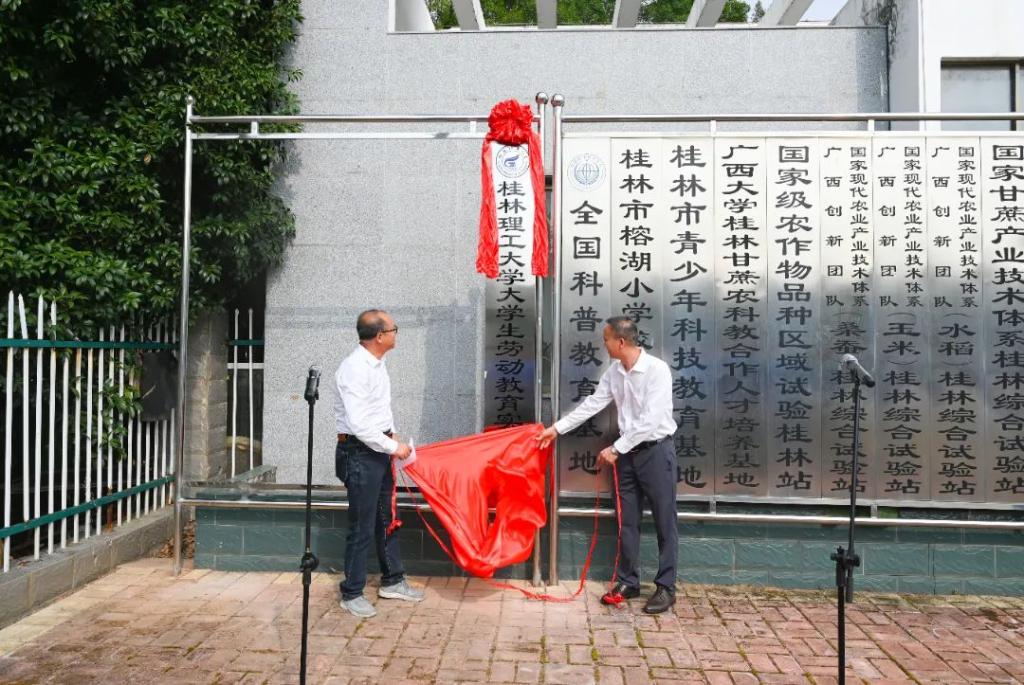 为深入贯彻落实中共中央、国务院和教育部关于劳动教育的指导意见和实施要求,加快构建德智体美劳全面培养的教育体系,把劳动教育全面纳入人才培养全过程,培养学生正确的劳动价值观和良好的劳动品质,英国上市公司365劳动教育中心与桂林市农业科学研究中心共建大学生劳动教育实践基地。10月13日下午,学校大学生劳动教育实践基地揭牌仪式在桂林市农业科学研究中心举行。学校学生工作部(处)副部(处)长、大学生就业与职业规划指导中心主任迟国东、桂林市农业科学研究中心副主任梁志鹏出席仪式。学工处相关负责人、各学院学工组长、劳动教育专项研究团队成员及50余名学生代表参加仪式。