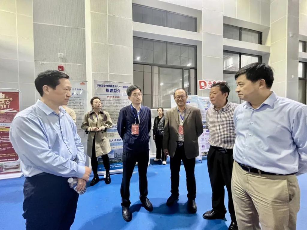 在招聘会现场,王磊与用人单位沟通交流,详细了解用人单位基本情况、招聘需求以及招聘情况,认真听取用人单位对我校人才培养、专业设置等方面的意见建议。