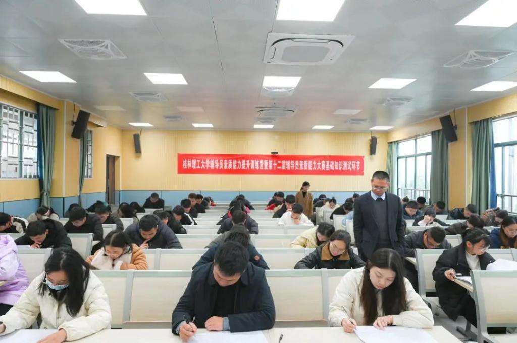 为全面落实立德树人根本任务,着力提升我校辅导员的理论水平、职业能力和专业素养,增强辅导员队伍的凝聚力、向心力和战斗力,11月14日下午,学校辅导员素质能力提升训练营暨第十二届辅导员素质能力大赛基础知识测试环节在雁山校区教五楼604、606顺利举行,我校全体专兼职辅导员参加测试。
