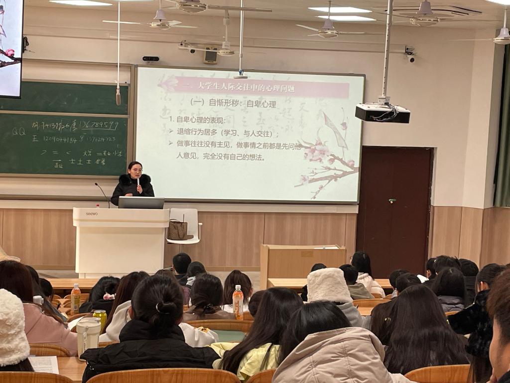 庞如雪老师在公开课上借助案例、漫画等方式,与同学们一起探讨了大学生常见人际交往中的自卑、自负等心理问题,呈现这些心理问题的表现,及分析形成的原因,引导学生正确认识人际交往中的心理问题,并学会如何有效处理日常生活学习中的人际上的困扰。
