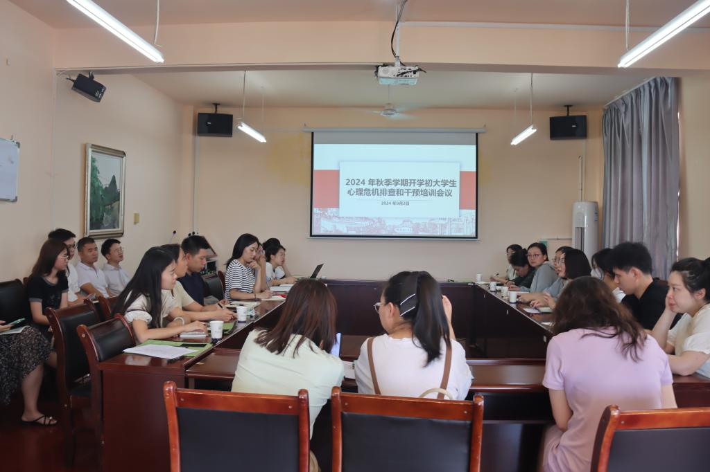 为贯彻落实《自治区教育厅办公室关于做好2024 年秋季学期开学初大学生心理危机排查和干预工作的通知》(桂教办〔2024〕1151号)的指导精神,提高我校学生的心理健康品质,对有心理危机的学生早发现、早干预、早治疗。我校心理健康教育与咨询中心于2024年9月2日下午,在雁山校区心视界成功召开2024年秋季开学初大学生心理危机排查与干预培训会议,各学院负责心理工作的辅导员及2024年新入职的辅导员参加了本次培训。
