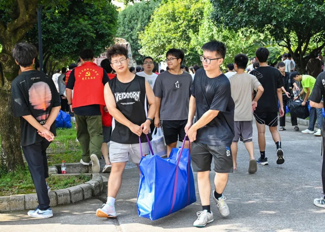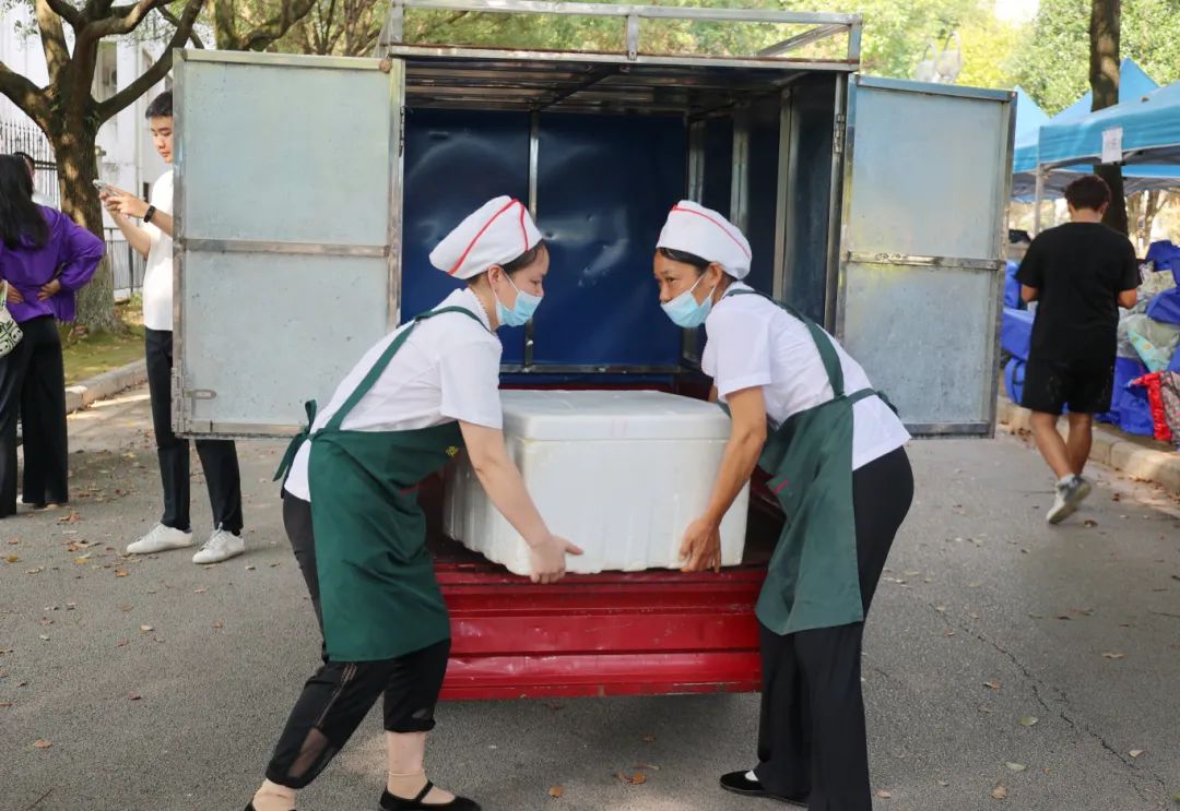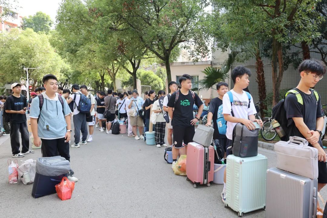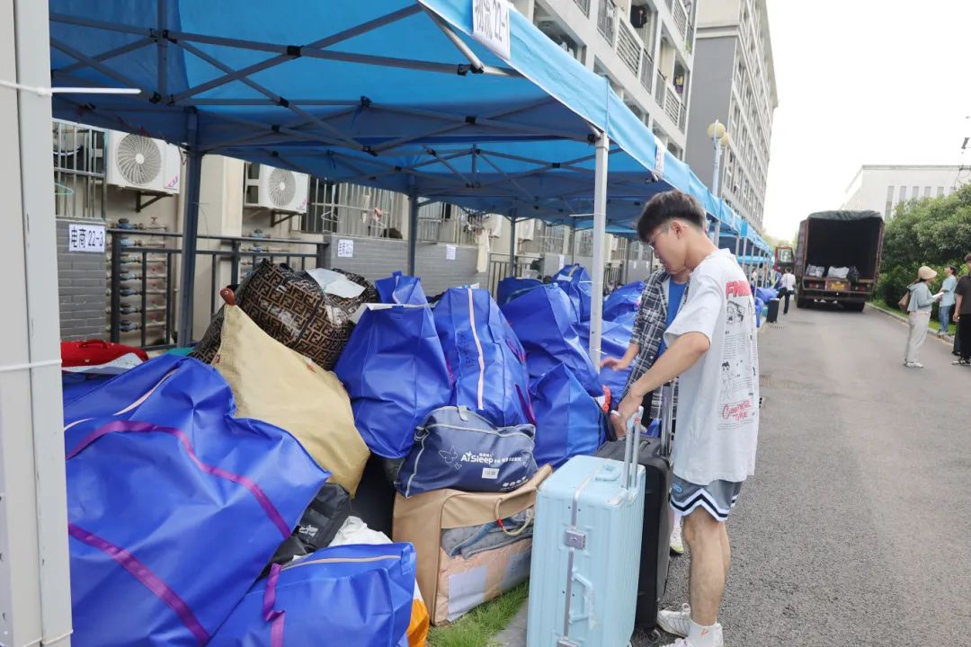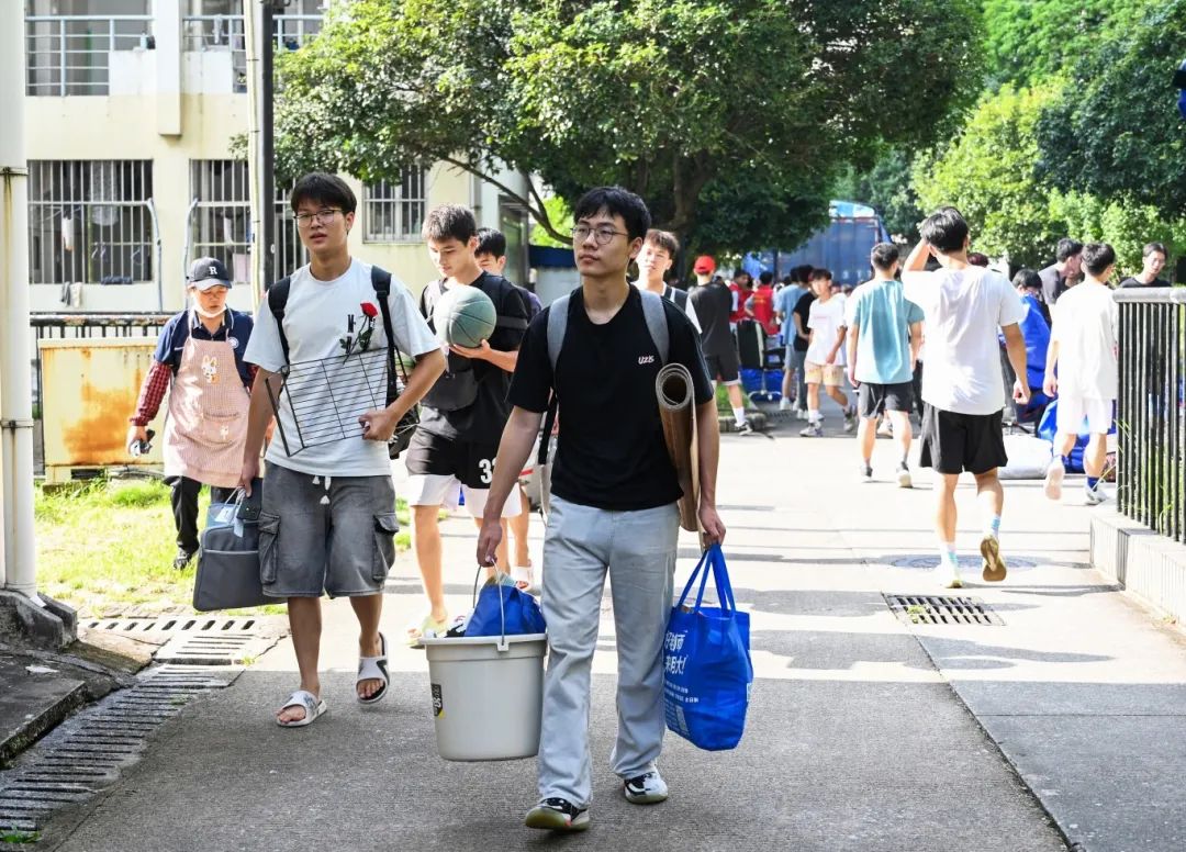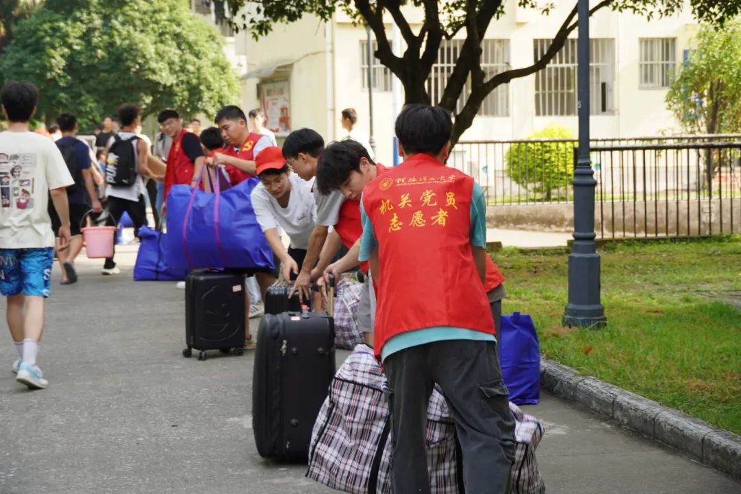 在搬迁过程中,相关职能部门领导干部、相关学院主要负责人、辅导员、班主任、医疗、保卫、后勤人员以及学生志愿者等紧密配合、有序推进。在搬迁现场,到处充满着温馨和谐的气氛,学校根据宿舍分布情况,合理安排各学院学生分批分时段搬迁,确保各批次学生入住“无缝对接”;学校在两校区内搭建100余顶防雨防晒帐篷,设置了客车、货车停靠点及行李集中存放点,并为学生提供“爱心小推车”“暖心三轮车”“免费饮用水供应点”等系列服务;同时,食堂还适当提前和延后营业时间,满足搬迁学生就餐需求;校医院在两校区设置了临时医疗服务点,为学生安全保驾护航;相关学院充分发挥学生党员和学生骨干先锋模范作用,成立搬迁工作志愿服务队,为搬迁学生提供秩序维护、入住登记、搬运行李等志愿服务,有力地确保了搬迁工作圆满完成。