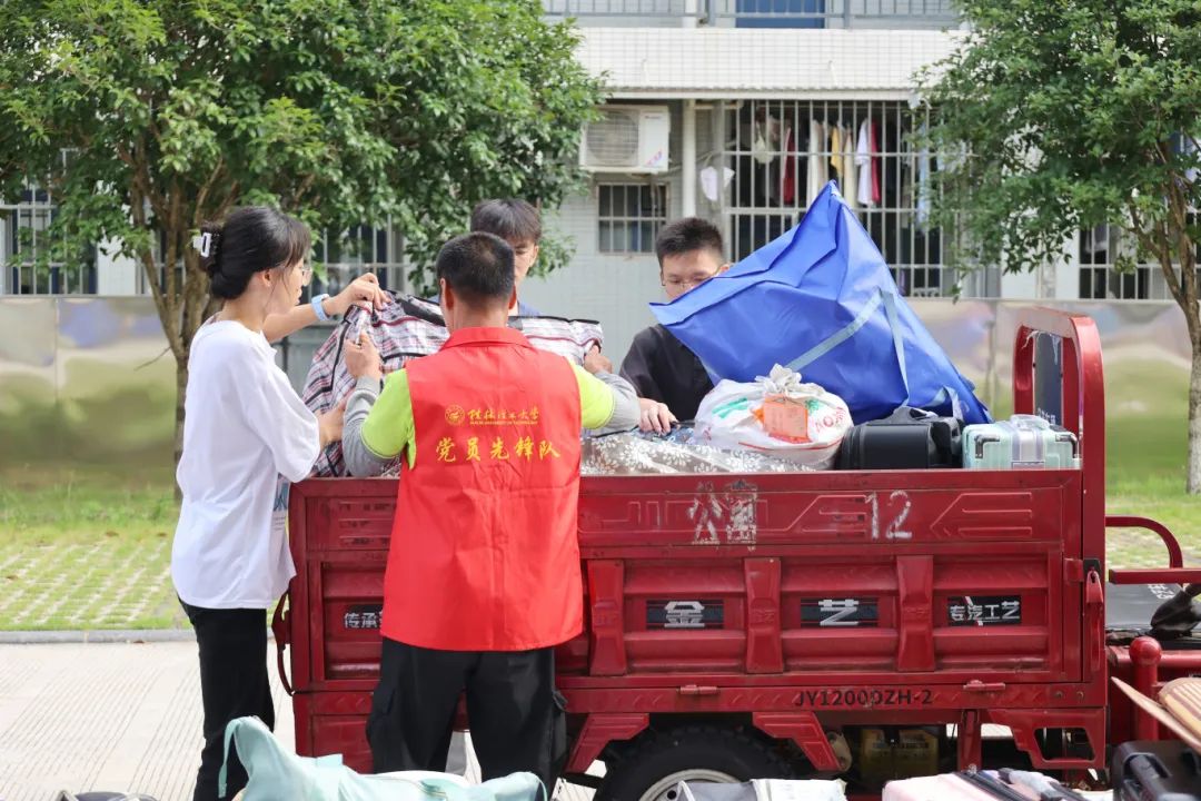 党员教师帮助学生搬运行李