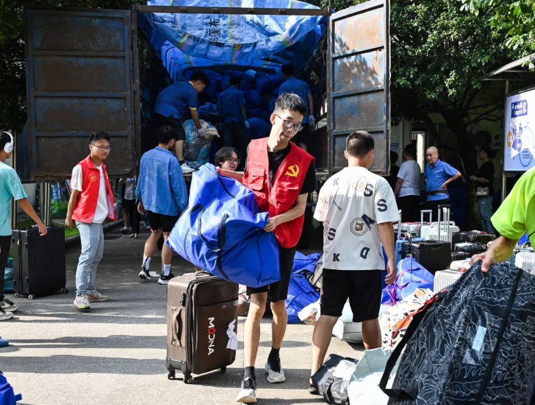 学生在搬运行李