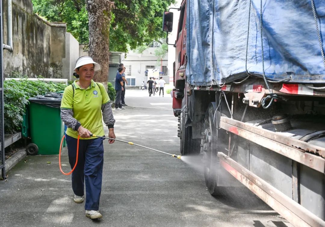 后勤人员消杀运载行李车辆