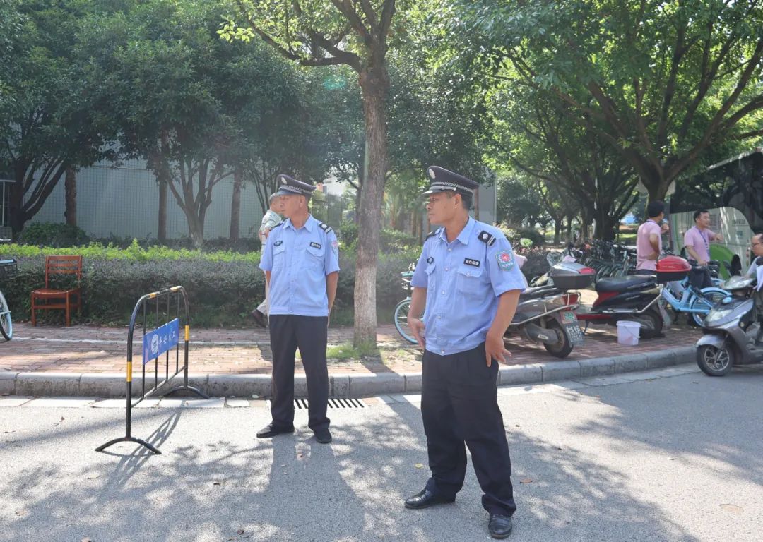 安保队员在现场指挥交通