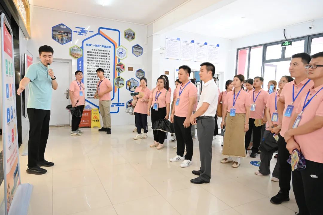 8月24日下午,广西物流职业技术学院学生工作部(处)部(处)长林锋一行50余人来访我校,参观交流“一站式”学生社区综合管理模式建设工作。学校学生工作部(处)副部(处)长周明权在雁山校区热情接待了来访客人。