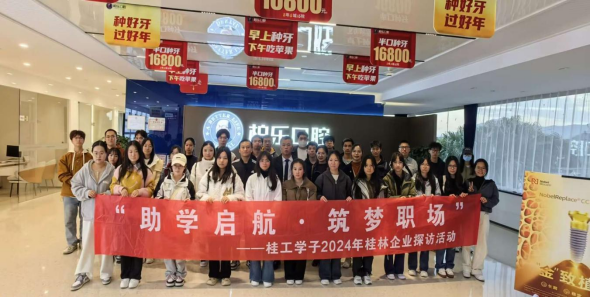 为进一步丰富资助育人工作内涵,拓宽受助学生职业视野,提升受助学生就业综合能力,营造支持高校毕业生留桂就业的良好氛围,11月27日下午,学校学生工作部(处)联合地球科学学院组织商学院、艺术学院及测绘地理信息学院的30多名受助学生开展了2024年“助学启航·筑梦职场——桂工学子企业探访活动”。地球科学学院周密老师、吕思慧老师带队探访了我市新兴传媒行业的佼佼者——广西勇锐数码科技有限公司,我市商务服务业知名企业——桂林华娱时代文化传媒有限公司,以及我市的优秀的医疗服务业企业——桂林市柏乐口腔门诊部有限公司。