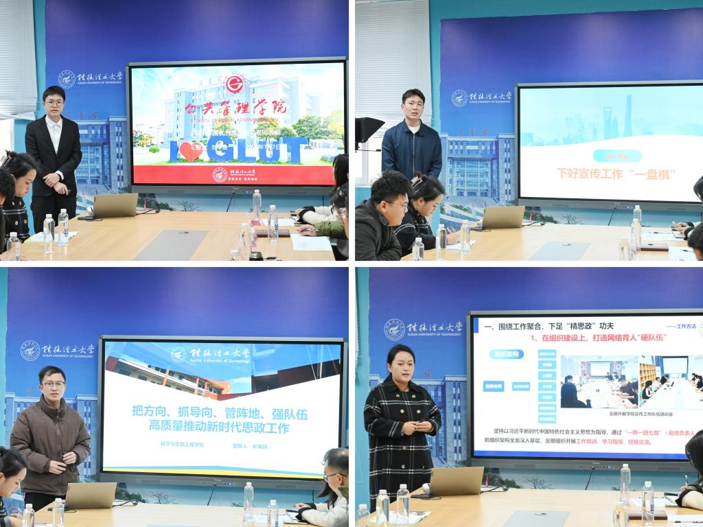 为进一步总结网络思政和易班建设工作经验,促进各学院之间的交流,不断提高我校网络文化建设的水平,充分展现学校新媒体队伍的精神风貌,1月7日上午,我校在雁山校区行知楼B418会议室开展2023—2024年度优秀易班指导老师答辩会。学工部(处)副部(处)长莫媛出席答辩会并担任评委,学生工作部(处)、校团委相关科室负责人以及各学院易班指导老师参加本次答辩会。