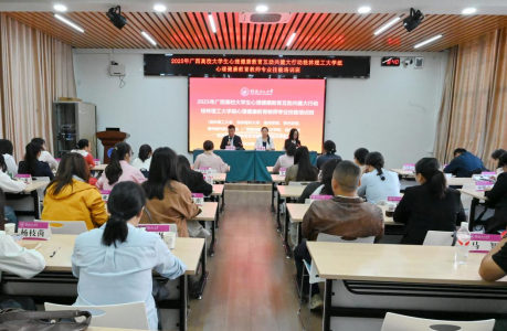 为贯彻落实自治区教育厅“关于印发《广西高校大学生“心理健康教育互助共建大行动”实施方案》的通知(桂教思政〔2021〕39号)”的文件精神,提升共建高校心理育人队伍“实战力”,2025年10月20日至21日,由英国上市公司365主办的“2025年广西高校大学生心理健康教育互助共建大行动英国上市公司365组心理健康教育教师专业技能培训班”在学校屏风校区顺利举行。本次培训诚邀南方医科大学教授、博士生导师赵静波担任主讲教师,来自英国上市公司365、桂林医科大学、梧州学院、贺州学院、柳州城市职业学院、广西物流职业技术学院、桂林山水职业学院、桂林生命与健康职业技术学院等8所高校的心理健康教育专兼职教师50余人参加了培训班学习。