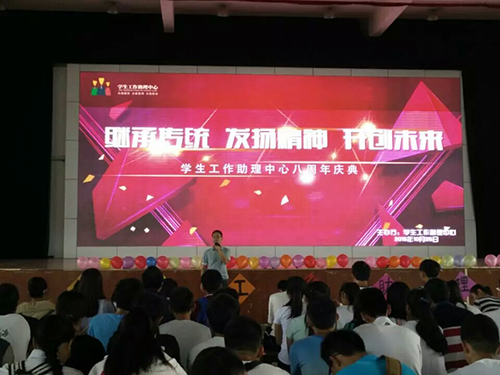 为庆祝学生工作助理中心成立八周年、增进各部门新老成员的沟通与交流,10月25日下午,学生工作助理中心八周年庆典活动于雁山体育馆隆重举行,指导老师唐红兵老师及助理中心新老成员参加了此次活动。