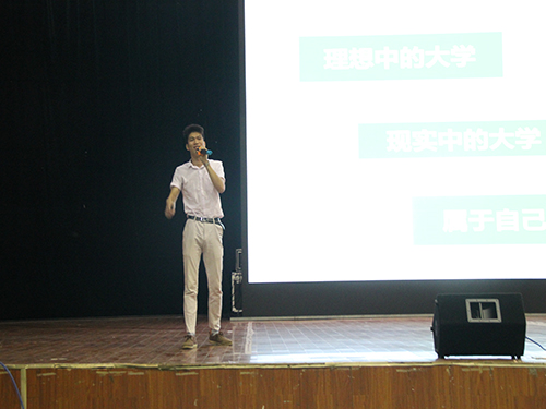 为激发2015级新生的学习热情,在新生群体中树立榜样,9月14日晚,由学生工作部(处)主办、学生工作助理中心承办的2015年秋季学期优秀学生报告团首场宣讲会在综合体育训练馆顺利举行。宣讲会由“创业达人”韦福瑞、“公益好人”欧雷、“学霸超人”陈明月以及“自强之星”甘书杰任主讲。4400多名2015级新生及各学院新生辅导员参加了宣讲会。