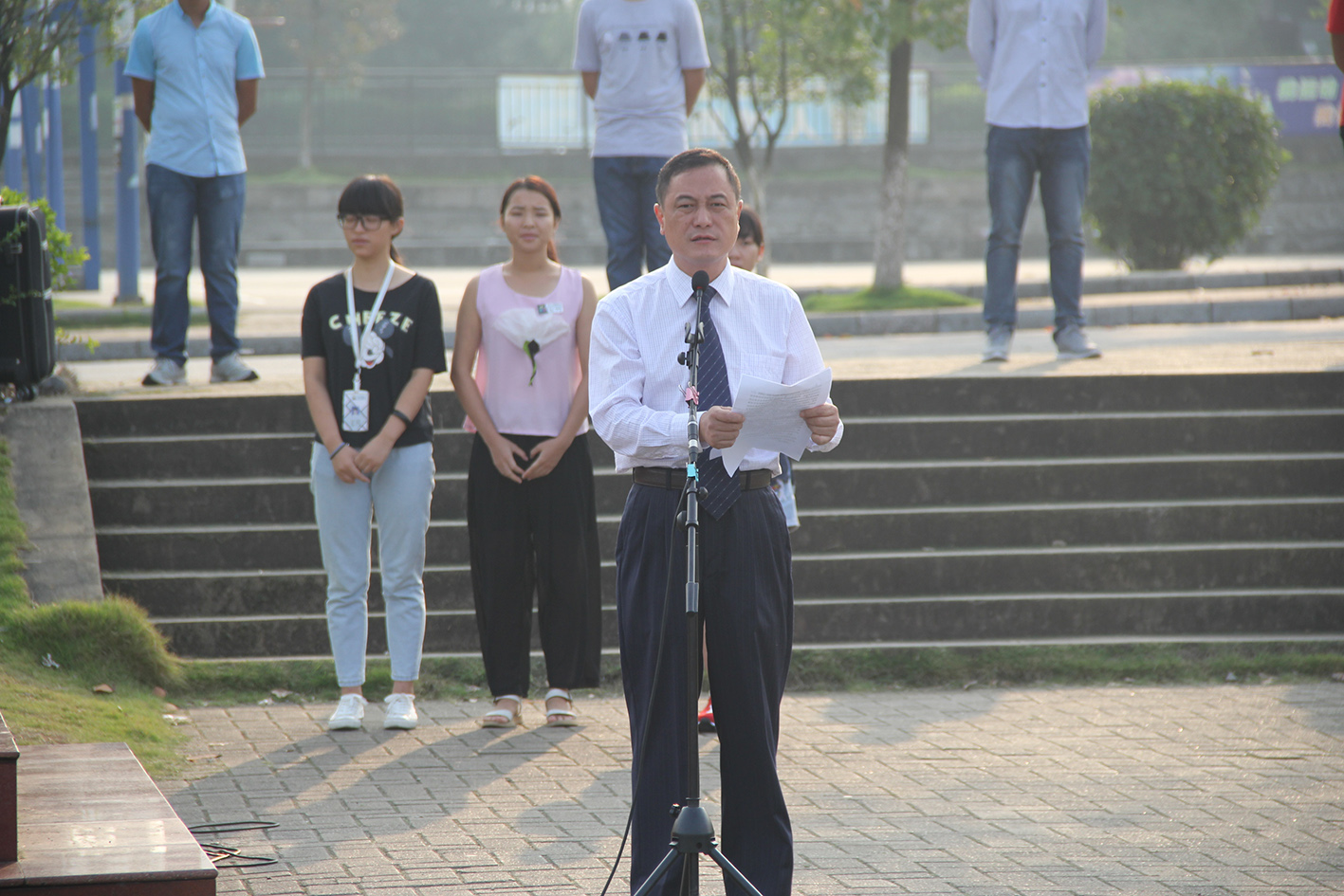 升旗仪式后,学校副厅级调研员张劲松代表学校党委、学校行政致辞。他首先向已经顺利完成入学教育和军训任务的2015级新同学表示亲切的问候;向全校辛勤工作、刻苦学习的广大师生致以节日的祝贺。张调研员和在场的师生一起回顾了建国66年来祖国发生的沧桑巨变和取得的伟大成就,以及学校59年来在人才培养、科学研究、社会服务和文化传承与创新方面创造的辉煌业绩。“广大青年要从现在做起,从自己做起,勤学、修德、明辨、笃实,使社会主义核心价值观成为自己的基本遵循,并身体力行大力将其推广到全社会去,努力在实现中国梦的伟大实践中创造自己的精彩人生。”张调研员用习近平主席的话,勉励广大学子要自觉践行社会主义核心价值观,锤炼高尚品格,敢于有梦、勇于追梦、勤于圆梦。希望广大同学能够深刻领会“厚德笃学
