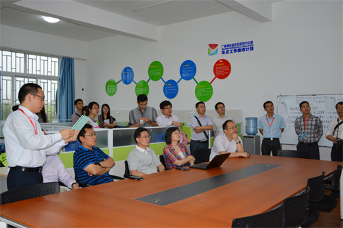 在桂林电子科技大学党委副书记、纪委书记覃干超等陪同下,考察组对该校易班发展研究中心和心理健康教育中心进行了实地考察,并就该校网络思想政治工作和易班建设的创新做法及经验进行了全方位的学习了解。