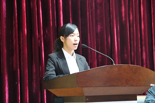 获奖同学代表、人文社会科学学院2011级行政管理专业的农珑同学发言