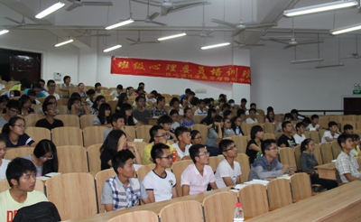 2014级新生班级心理委员培训于10月28日晚7:00在雁山校区07519教室继续进行。当晚的培训有两场主题讲座,分别是由土木与建筑工程学院学工组组长宋明霞老师主讲的《大学生人际交往》和由心理健康教育与咨询中心主任谭咏梅老师主讲的《朋辈咨询,伴你同行》。