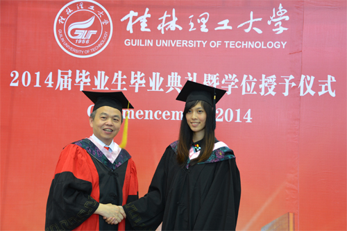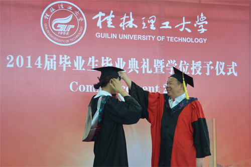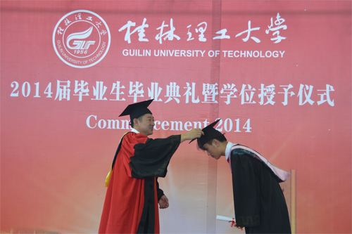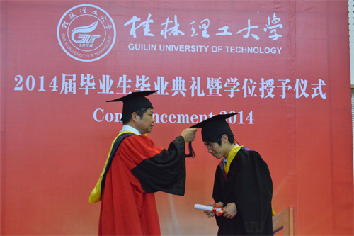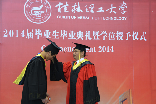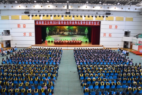 6月20日,我校2014届毕业生毕业典礼暨学位授予仪式分别在雁山校区体育训练馆和屏风校区体育馆隆重举行。学校校长、学位评定委员会主席解庆林,党委副书记王赣华,党委副书记、纪委书记陈贵英,副校长肖岳峰、陈学军、吴志强、周国清、刘宝臣、梁福沛,正厅级调研员张鹏等在家校领导及校学位评定委员会成员身着导师服出席毕业典礼暨学位授予仪式。毕业典礼暨学位授予仪式由陈贵英副书记主持。
