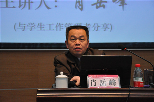 肖副校长从“什么是管理、解读我们的工作、善待工作、人生感悟”等四个方面,结合自身从事管理工作的深刻体会和饱含哲理的人生感悟向老师们讲述了做好管理工作特别是做好学生管理工作的理念、方法和技巧。整场报告,既有理论深度,又与实际工作相结合,使大家深受启发和教育,为辅导员、班主任今后开展好学生工作提供了宝贵的经验。