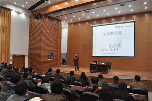1月6日下午,学校副校长、学生工作领导小组副组长肖岳峰教授在屏风校区图书馆报告厅为学校辅导员、班主任培训班学员作题为《怎样做管理》的报告,学校党委副书记陈贵英与全体专兼职辅导员、2013级班主任一同聆听了报告。