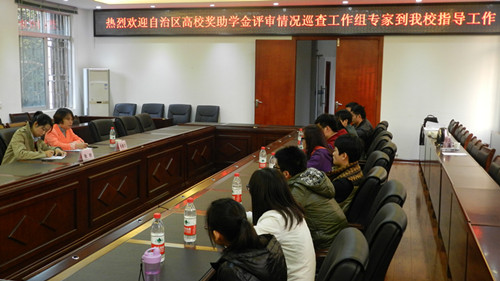 11月13日下午,受自治区学生资助管理办公室委托,桂林电子科技大学学工部(处)梁炳辉副部(处)长、桂林医学院学工部(处)肖湘君副部(处)长等一行四人组成专家组到我校开展高校奖助学金评审情况巡查工作。学工部(处)部(处)长唐壮东、学工部(处)副部(处)长张雷以及学生资助管理中心的老师参加了工作汇报会。