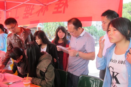 10月26日上午,由校学生资助管理中心组织举办的2013-2014学年度勤工助学“双选会”分别在屏风、雁山两校区举行。