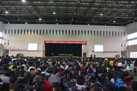 12月27日下午,学校2011——2012年度国家奖助学金表彰大会暨“感恩·奉献·成才”先进事迹报告会在雁山校区体育馆隆重举行。学校党委副书记王赣华出席会议,学工处、校团委负责人,各学院党委副书记、辅导员、获奖学生及学生代表等参加了此次大会。会议由学工处副处长张雷主持。