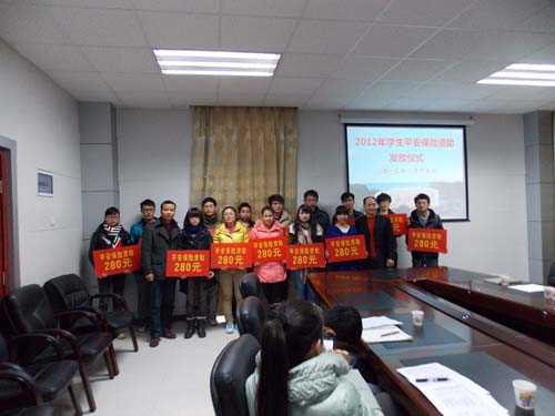 2013年1月15日下午,我校2012年学生平安保险资助发放仪式在雁山校区科技楼201室举行。学生工作部(处))熊英部(处)长、张雷副部(处)长,中国人保寿险桂林市分公司刘一铭经理和莫梅梅女士,中国太平洋寿险桂林中心支公司秦顺华经理以及各学院负责资助工作的老师参加了发放仪式。