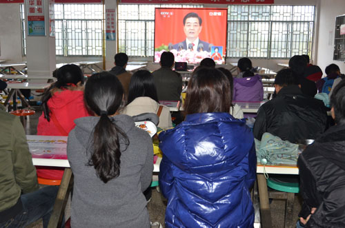 11月8日上午,党的十八大隆重召开,胡锦涛同志向大会作题为《坚定不移沿着中国特色社会主义道路前进 为全面建成小康社会而奋斗》的报告。学工处全体成员通过广播电视、网络直播、手机平台等方式收听收看大会开幕式直播。9日下午,学工处组织全体成员召开学习党的十八大精神座谈会,与会的同志纷纷畅谈了对胡锦涛总书记所作报告的认识与体会。