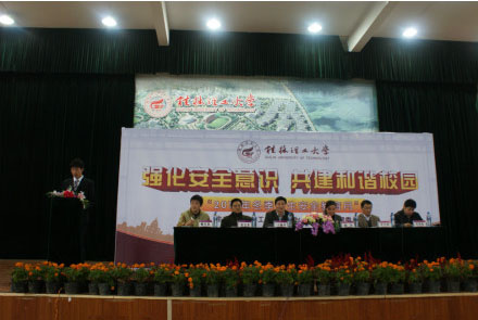 学工处熊英处长向与会人员介绍了“2012年冬季学生安全教育月”活动的总体布署,学工处学生工作助理中心安全教育部负责人朱少华同学宣读了《冬季学生安全教育与安全防范倡议书》。