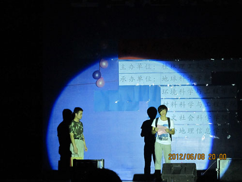 为了进一步丰富我校学生的校园文化生活,加强学校心理健康教育工作,促进学生健康成长。由我校心理健康与咨询中心主办,地球科学学院、环境科学与工程学院、材料科学与工程学院、测绘地理信息学院和人文社会科学学院一起承办的“心怀感恩,健康成长”第四届大学生心理情景剧大赛于6月8日晚19:30在雁山校区风雨球场正式拉开帷幕。担任本次大赛评委的领导和老师有学校学生工作(部)处处长熊英、副处长邓国彬、理学院党委副书记冯广辉、心理健康教育与咨询中心主任宋明霞以及伍开明老师和邝宏达老师。出席本次大赛的老师还有各学院团委书记和辅导员老师们。