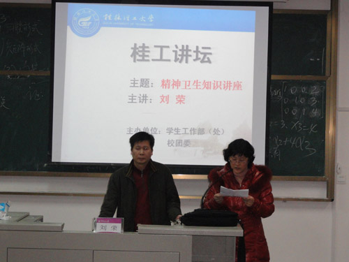 3月21日晚在雁山校区07519教室,181医院心理科主任刘荣医生以精神卫生知识为主题,为我校辅导员和班级心理委员做了一场简单实用的知识讲座。