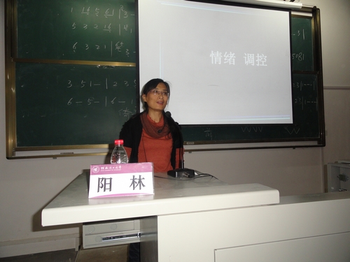 2011年11月22日,马克思主义学院阳林副教授为新生班级心理委员讲授了以情绪调适为专题的讲座。阳林老师的讲座从大学生常见的情绪困扰入题,展现了从大一至大四学生面临的各种人生转折和情绪反应,结合实际案例传授了各种积极情绪的培养、消极情绪的调适方法。