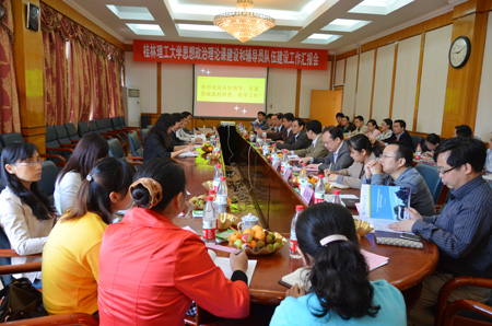 督查组一行首先随机听一堂《毛泽东思想和中国特色社会主义理论体系概论》后,来到学校教八楼会议室,受到了赵艳林书记、赵君副书记、王赣华副书记等的热烈欢迎,赵艳林书记向督导组介绍了我校思想政治理论课建设领导小组设置、马克思主义学院成立、思政课课程建设、辅导员队伍建设等总体情况。赵君副书记作了关于我校思想政治理论课建设情况的汇报,王赣华副书作了关于我校辅导员队伍建设情况的汇报。