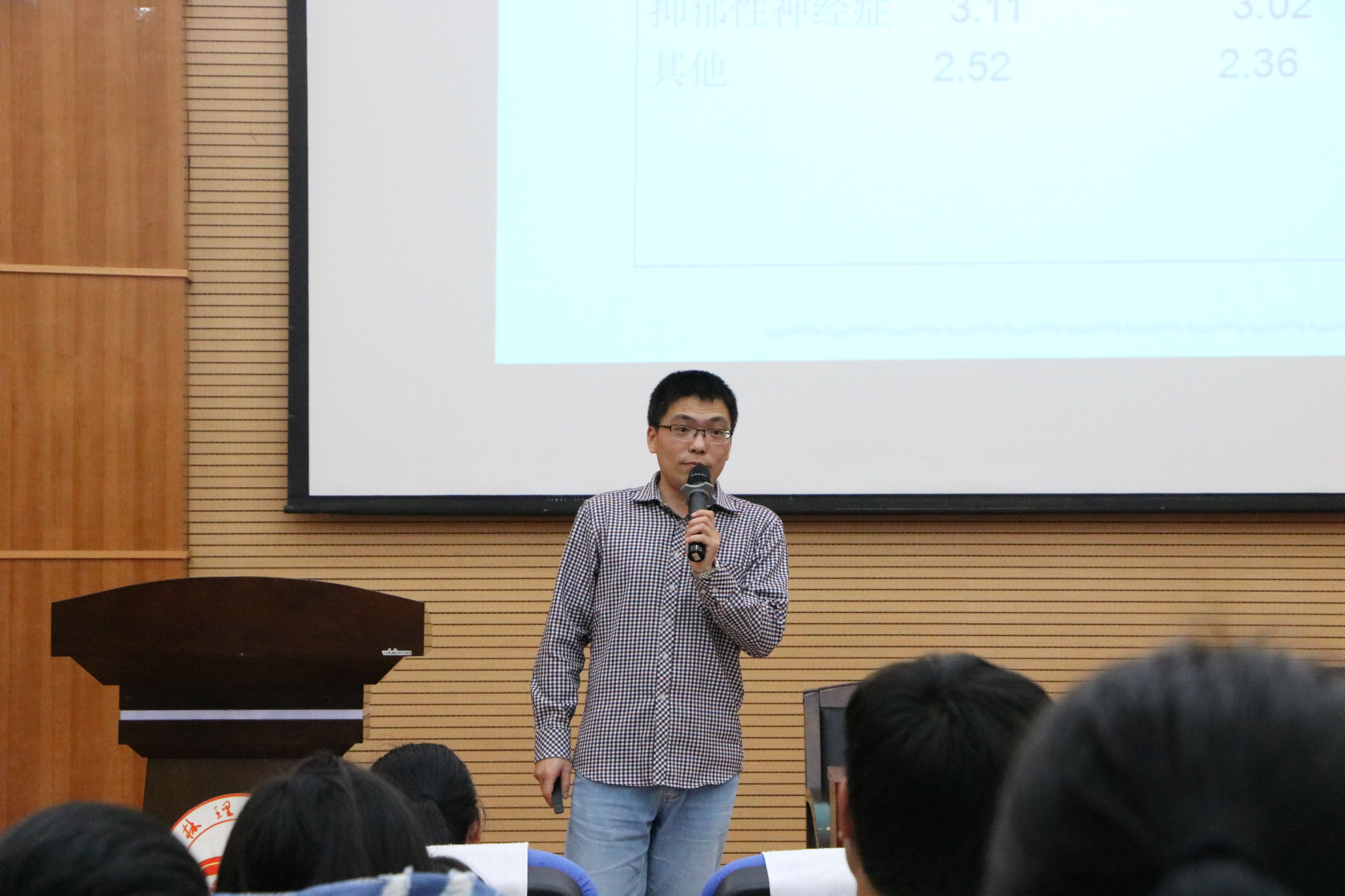 讲座开始,古田老师以独特的方式将各位老师带进了讲座内容中,对目前大学生精神疾病概况进行简单分析;随后,古田老师用发生在我们身边的例子,讲授了如何识别学生心理问题和如何处理心理问题;在讲到如何提高心理技能时,他讲到在客观自己的定位之后,应提高自身知识,在咨询中要大胆面接,对学生心细体会。而后,古田老师对新精神卫生法进行解读,并用生动的例子传授如何运用处理在工作中遇到的突发状况;讲座最后,古田老师解答了老师们平时遇到的各类问题。