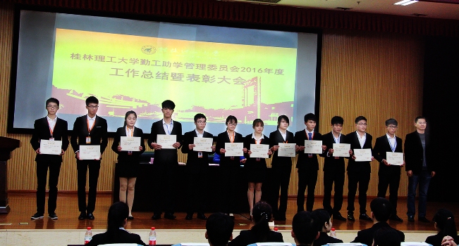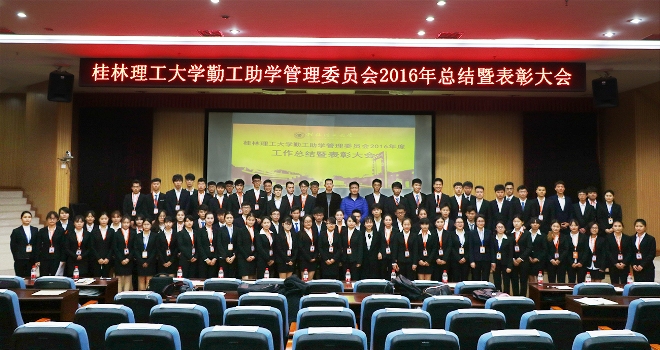 1月5日晚,学校勤工助学管理委员会2016年工作总结暨表彰大会在雁山校区图书馆报告厅隆重举行。校学工部(处)副部(处)长冯广辉老师出席了本次大会,会议由勤工助学办公室主任杨晓老师主持,学校勤工助学管委会全体学生干部参加了本次会议。