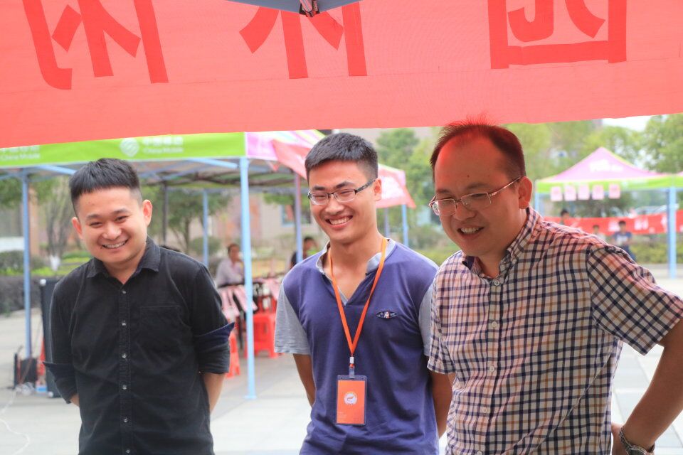 校学工处唐壮东处长(右一)到“双选会”现场指导工作