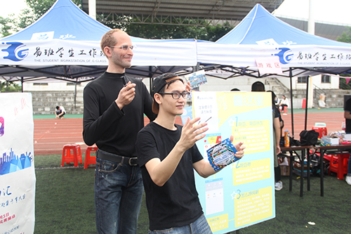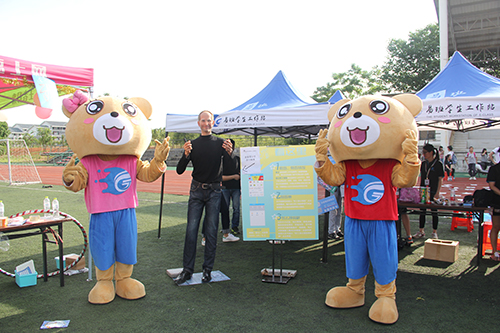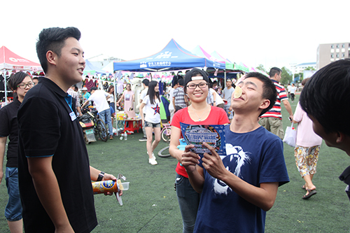 同学们比默契,拼活力,在游戏中收获欢乐,在活动现场“乔布斯”与易班熊也来助阵,现场气氛十分热闹。