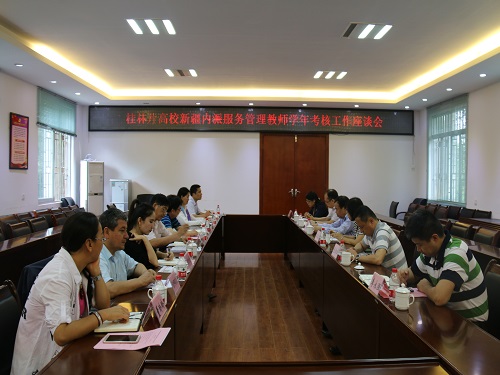5月19日上午,桂林片高校新疆内派服务管理教师年度工作考核座谈会在我校召开,自治区高校工委宣传部部长、教育厅思政处处长李美清,学校副校长梁福沛、副厅级调研员张劲松,桂林片有关高校学工部门负责人,桂林片高校新疆内派服务管理教师参加了会议。