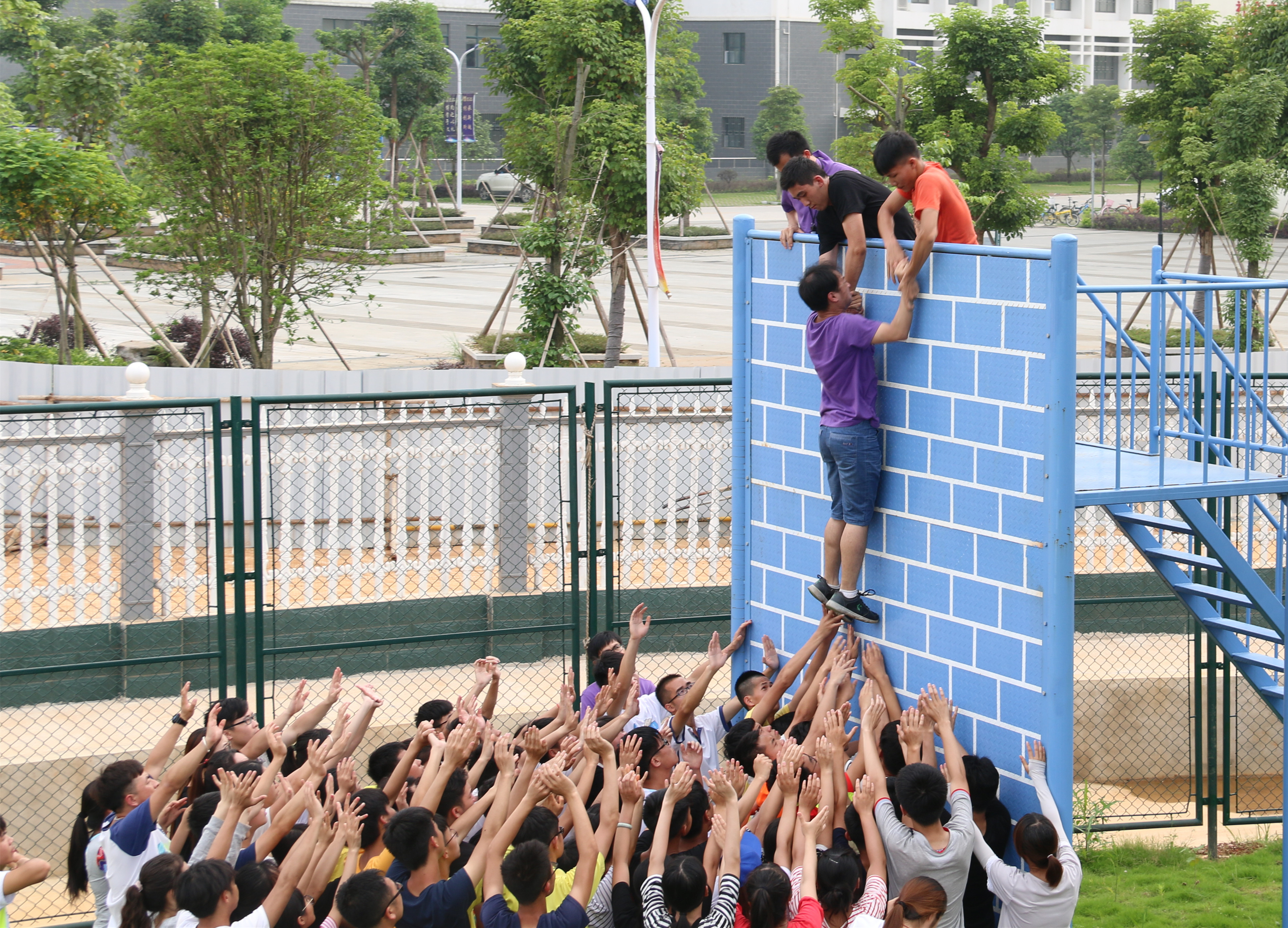 6月4日,由学校心理健康教育与咨询中心主办,主题为“互助同行——积聚前行的动力”的素质拓展活动在学校雁山校区顺利开展。来自各个学院的130多名学生参加了本次素质拓展活动。