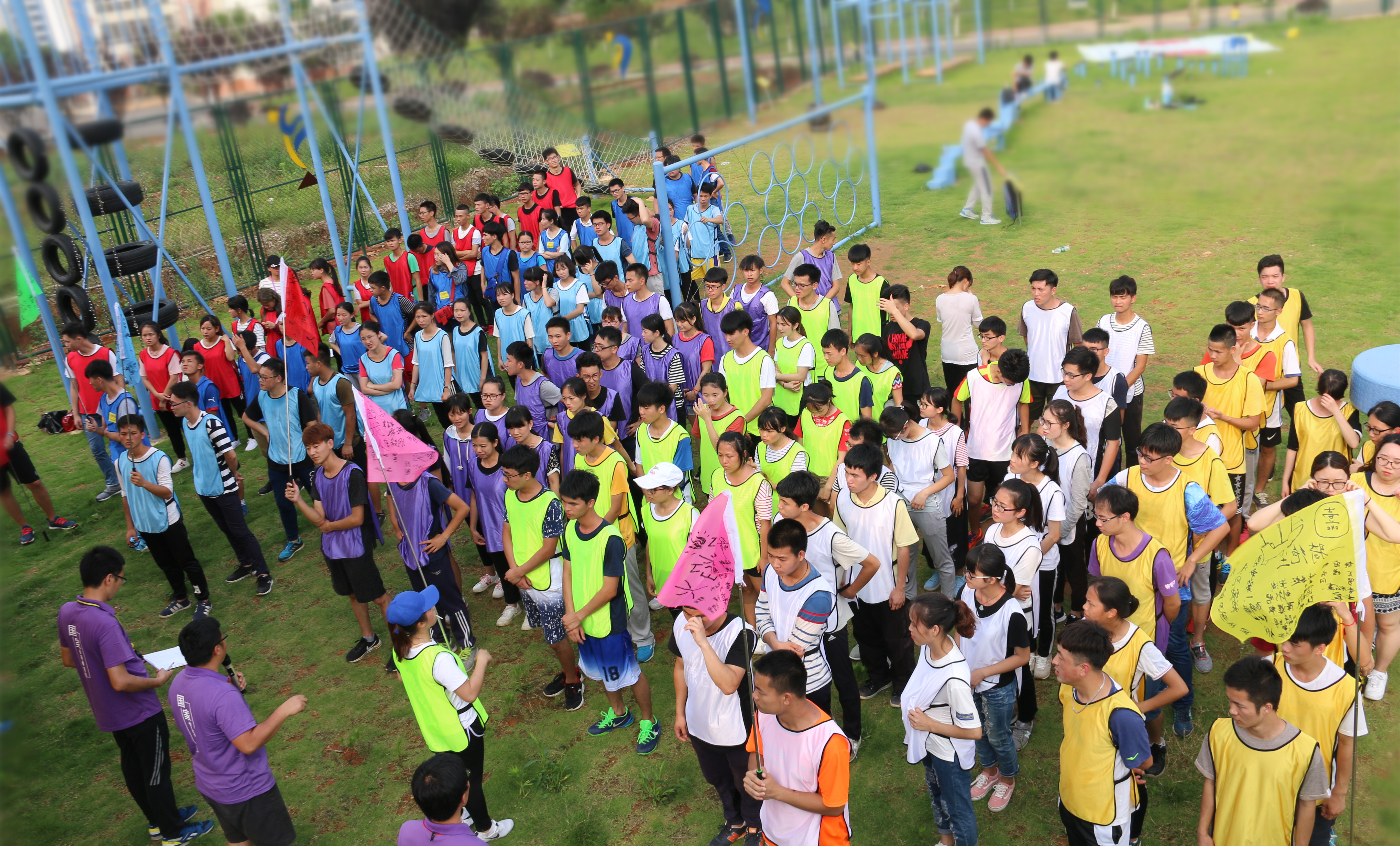 本次素质拓展活动,邀请到了学校国家体验教育师团队和鲲鹏素质拓展协会的骨干们担任培训导师和助教。活动围绕主题,通过开营导入、破冰游戏、团队组建、项目挑战、证书颁发等环节,循序渐进,结合同学们在各个项目中的种种体验,引导他们积极思考和交流分享。
