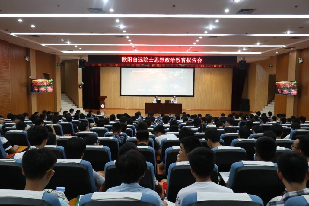 报告会的最后,欧阳院士勉励在座的广大青年学生,“做人,做事,做学问必须不怕吃苦,国家民族的发展,需要每一位青年的力量”。本场报告会极大地开阔了学生的视野,对引导学生正确认识时代责任和历史使命,正确认识远大抱负和脚踏实地发挥了积极作用。