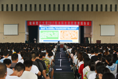 9月12日上午,学校副校长梁福沛在雁山校区体育训练馆为2017级新生作了以“我们应该如何度过大学生活”为主题的入学教育报告。2017级全体新生及辅导员参加了报告会。