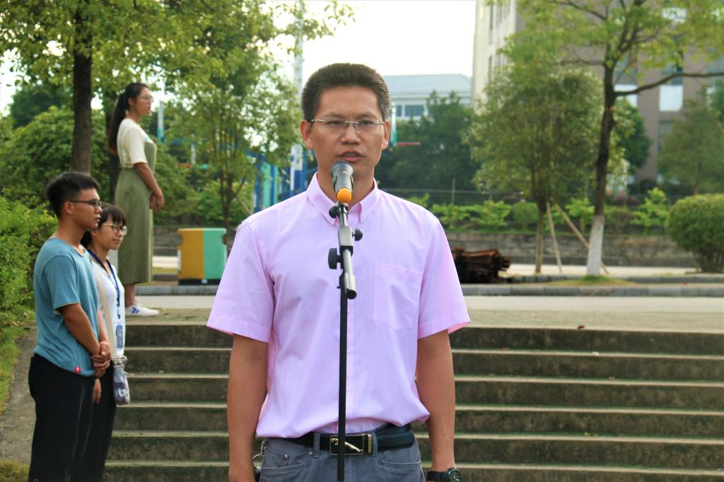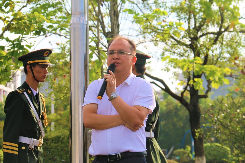 学校学生工作部(处)部(处)长唐壮东发表了国旗下讲话。他首先表达了对祖国欣欣向荣的美好祝愿,对16级和17级的同学提出新学期美好期待,鼓励同学们刻苦学习,心怀祖国,练好本领,牢记安全,为实现中华民族伟大复兴的中国梦而不懈奋斗!