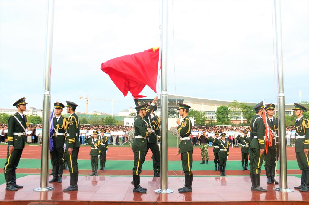 “祖国华诞欢庆时,扬旗共筑中国梦”。10月1日早上8时整,学校庆国庆升旗仪式在雁山校区运动场隆重举行。学生工作部(处)部(处)长唐壮东以及各学院党委副书记、辅导员、全体大一、大二在校学生参加了升旗仪式。