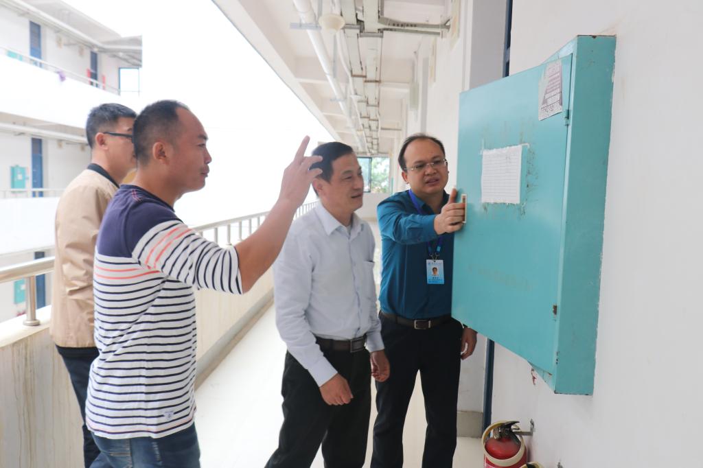 为营造安全、文明、和谐的校园环境,迎接党的十九大的胜利召开,10月13日上午,学校副厅级调研员张劲松在学工、团委、保卫和后勤等部门负责人的陪同下深入雁山校区学生宿舍,开展安全检查工作。