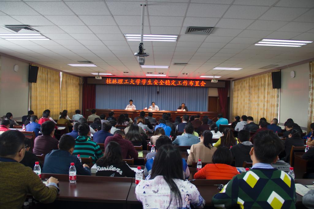 为营造安全、稳定、和谐的校园环境,迎接党的十九大胜利召开。10月17日上午,学校在雁山校区406会议室召开学生安全稳定工作布置会,对学校学生当前安全稳定状况进行分析研判,对下一阶段安全稳定工作进行部署安排,学校副厅级调研员张劲松出席会议并讲话,全体学工干部参加了会议,会议由校团委书记周国桥主持。