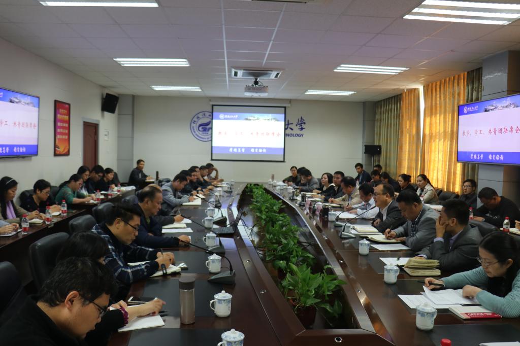 10月31日上午,学校在雁山校区第四会议室召开教学、学工、共青团工作联席会议,副校长梁福沛、副厅级调研员张劲松出席会议并讲话。教务处、学工处、团委、发规与教学质监中心负责人及各学院分管教学副院长,分管学生工作党委副书记参加会议。
