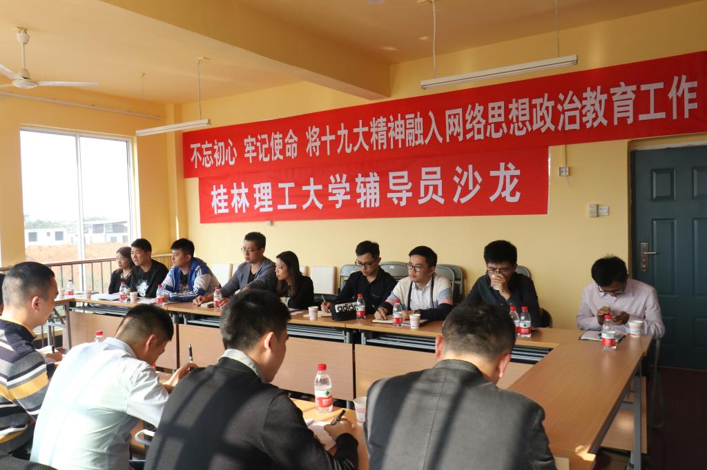 为积极开展十九大精神的学习宣传工作,充分发挥我校易班平台的线上网络优势,不断提高我校网络思想政治教育的质量,10月30日下午,2017年第三期辅导员沙龙在雁山校区辅导员之家举行。此次沙龙以“不忘初心,牢记使命,将十九大精神融入网络思想政治教育工作”为主题进行经验交流,英国上市公司365学生工作部负责人,易班发展中心负责人以及各学院易班指导老师参加了本次沙龙活动。